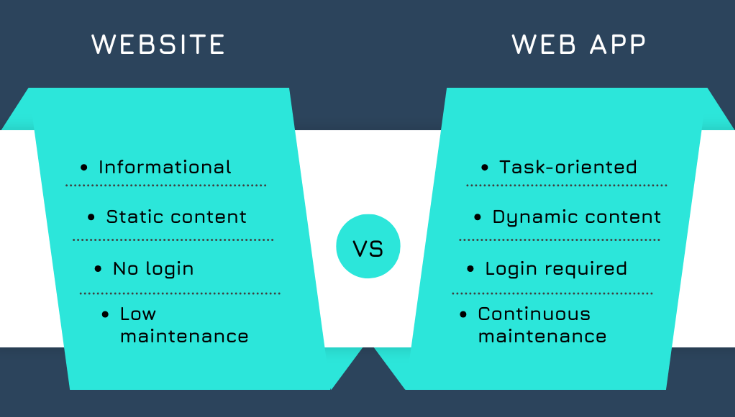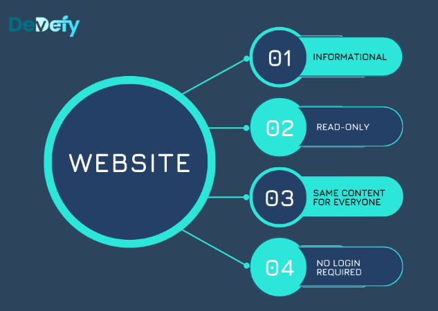 A website shares static information (like a brochure), while a web application enables users to perform dynamic tasks and manage data (like a tool).
