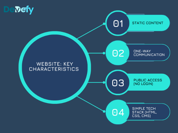 Example: SaaS platforms, marketplaces, internal tools. Note that for a SaaS product, you will likely have both a web application and a website. This brings us to our next point…